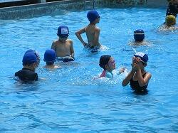 さすがの高学年,コース別に分かれてしっかり泳法を習っています。