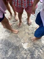 自分たちで作った水遊び用のおもちゃで,いっぱい遊びました。取っ手が壊れてしまっても、自分のものの証であるイラストを描いたカードがはがれおちても、足が泥だらけになっても,おかまいなし!