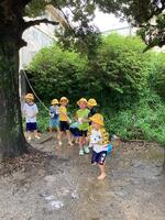 7月17日の今日は,1年生の皆で水遊びをしました。太陽が出てしまうと熱中症警戒アラートが出てしまい外での活動ができなくなってしまうことが多い近頃ですので,こんな曇りの日は逆にチャンスです。