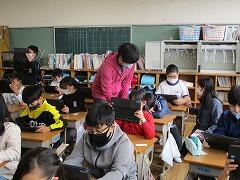 1・2年生用にはiPadが導入され,今回の最初の学習ではICT支援員の名雪先生が