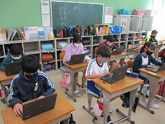 活用した学習が始まりました。3~6年生はChrome Bookが導入され,キーボード