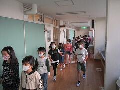 訓練終了後には,学級ごとに二次避難の経路確認をしました。