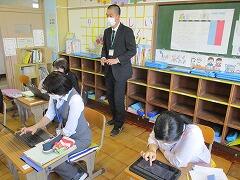 1・2年生用にはiPadが導入され,今回の最初の学習ではICT支援員の名雪先生が