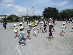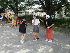 4年生は,唯一屋外でのレクです。熱中症予防で,木陰を使ってレクをしました。