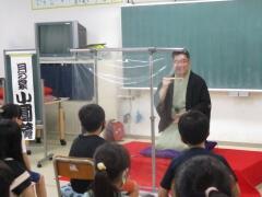 4年生は先週のそろばん教室に続いて,今週は「落語教室」の開催です。
