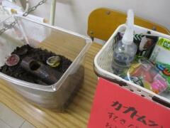 1年生教室前では,カブトムシくんがお出迎えです。