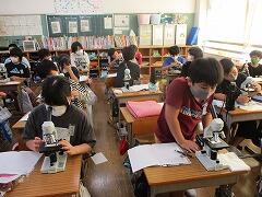 理科室での観察ができないため,教室に顕微鏡を運び入れて観察を行いました。