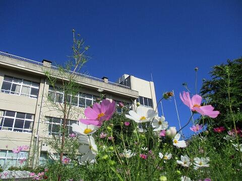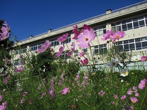 校庭の花壇のコスモス(秋桜)も,彩り鮮やかに咲き誇っています。