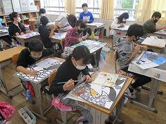 以前紹介した5年生の「切り絵」の制作が進められています。
