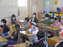 5校時,1年生の教室で2日早いハロウィンパーティーが行われました。