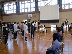 児童代表挨拶・花束贈呈の後,最後にみんなで校歌を3番まで一緒に歌いました。