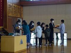 児童代表挨拶・花束贈呈の後,最後にみんなで校歌を3番まで一緒に歌いました。