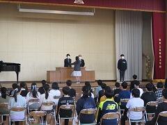 予行練習終了後には,5年生の代表児童から予行練習に参加した感想と