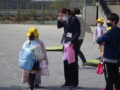 帰りの会終了後,校庭で転出される先生方との「お別れタイム」では,