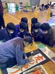 また本日は,書き初め練習会でした。綾部先生にお越しいただき,文字のバランスなど細かくご指導していただきました。先生の筆使いを間近でみて思わず「うわ~!」と声をもらしていました。