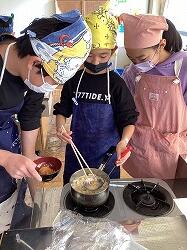 完成したものを食べると,「大根かたい!」と口々に。普段の食事で食べているお味噌汁のおいしさを改めて感じているようでした。