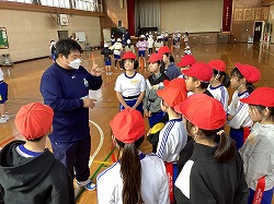 現在,体育で取り組んでいるタグラグビーですが,ボールキャリーのコツや,ボールを持たない人の動き,細かいルールなど丁寧に教えていただきました。