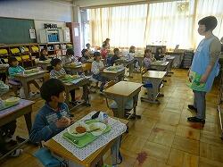 給食センターの栄養士,柴沼先生が,給食の様子を見に高西小に来てくださいました。