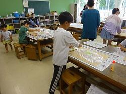 「ここに水を流そう!」「山を作ってトンネルにしよう」「川をつなげてみようよ」と,どんどん楽しい発想が膨らんできました。