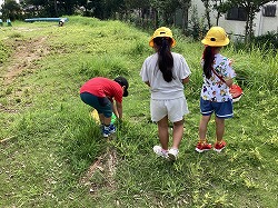 バッタや,コオロギ,イナゴを捕まえました。虫が苦手な子も,恐る恐る手を伸ばし挑戦していました。