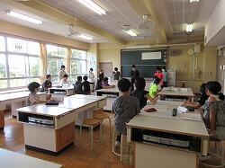今日は外が暑いので,一次避難のあとは教室で放送を聞きました。