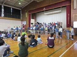 3、4年生で一緒にバスレクを楽しむ姿。