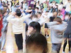 体育館で,みんなのりのり,かっこよく踊りました。