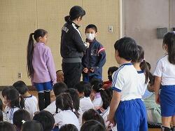 最初に,2年生に技を披露してもらいました。さすが先輩!!1年生は,2年生の技にくぎ付け。目を輝かせながら,「できるようになりたい!!!」と気持ちを高めていました。