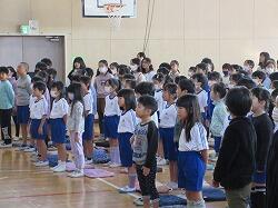 終業式では,「持久走練習をのりこえました」「漢字の練習をがんばりました」など,