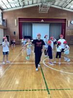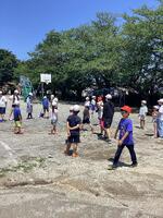 といってボールを渡している場面が微笑ましいこと。とたんにボールをもった6年に「自分も、自分も。」と両手を出す1年生たち。そこは6年生もしっかりしていて,