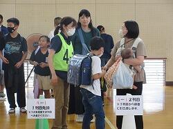 蒸し暑い体育館の中で,一人一人保護者のお名前を確認して,子どもを引き渡しました。