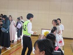 ドッチボールでは,2年生や3年生の投げたボールを6年生が軽々とキャッチして,両手を出す1年生にやさしく