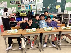 学級では,1組でウィンクキラーと人狼ゲーム,2組で風船バレーと爆弾ゲームをしました。