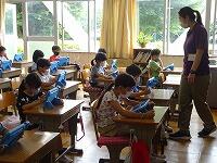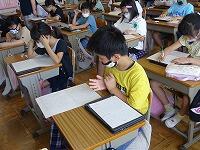 ・「今日の漢字はこちらです」「空書きを3回しましょう」指示を出しているのは子どもです。新しい漢字は子ども同士で学んでいます。