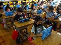 公園探検から帰ってきた1年生,すぐパソコンを手にします。