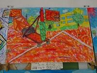 6年生の図工,校内のお気に入りの場所をデフォルメして描きました。