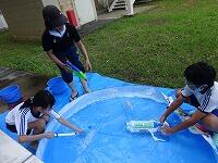 1,2年生もやってたけど,今日はなかよし学級,ひかり学級のみんながビショビショだよ。あれ,一番楽しんでいるのは先生みたい?