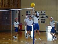 6年生,ソフトバレーボールの試合だ! このルール,普通のバレーボールとちがってレシーブ,トス,アタック…のほかに,もうひと手順あるのだ。知っているかな?