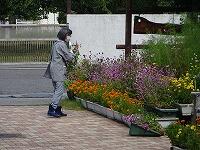 用務員の谷村さんは,お花名人。校門前に鮮やかに咲き誇っている千日紅(せんにちこう)を育てたのも,谷村さんです。今日は1年生が,千日紅の花束づくりをしました。谷村さん,いつもありがとう!