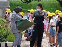 ② 大きなカマキリ,1年生をおそう! ワタシがつかまえて「さわってみる?」と差し出したら飛んじゃった。ごめんね~。