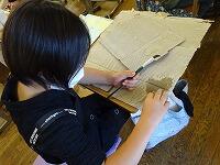 何やら段ボールで工作をしているクラスがあります。