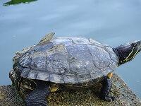 ① 池のカメさん,脱皮か,肌荒れか,まさかのカメックスに進化か? 甲羅がむけてきたけど大丈夫なのか?!
