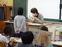 新しいALTのジェーン先生に覚えたアルファベットを聞いてもらって,「Good!」「Nice!」ってほめてもらったんだ~。わーい!