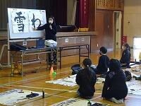 先週に引き続き,綾部久美子先生をお招きして,書き初め教室です。
