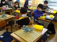 ITアドバイザーの田中先生に習って,4年生がプログラミングをしているよ。