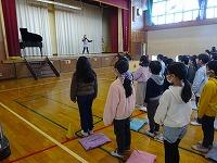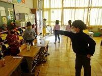 先生のみごとなお手本を真剣な目で見つめるみんな,練習中は全集中!