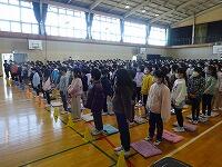やっと,今年はじめて,全校児童が体育館に集まっての終業式。