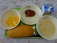 ・今日の給食は人気のハンバーグ。でもちょっと物足りない。