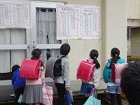 クラス替え発表を見て,「同じクラスだ!」「どんな先生かな」とドキドキ。