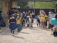 8時ちょっと前,たくさんの子どもたちが集まってきて…